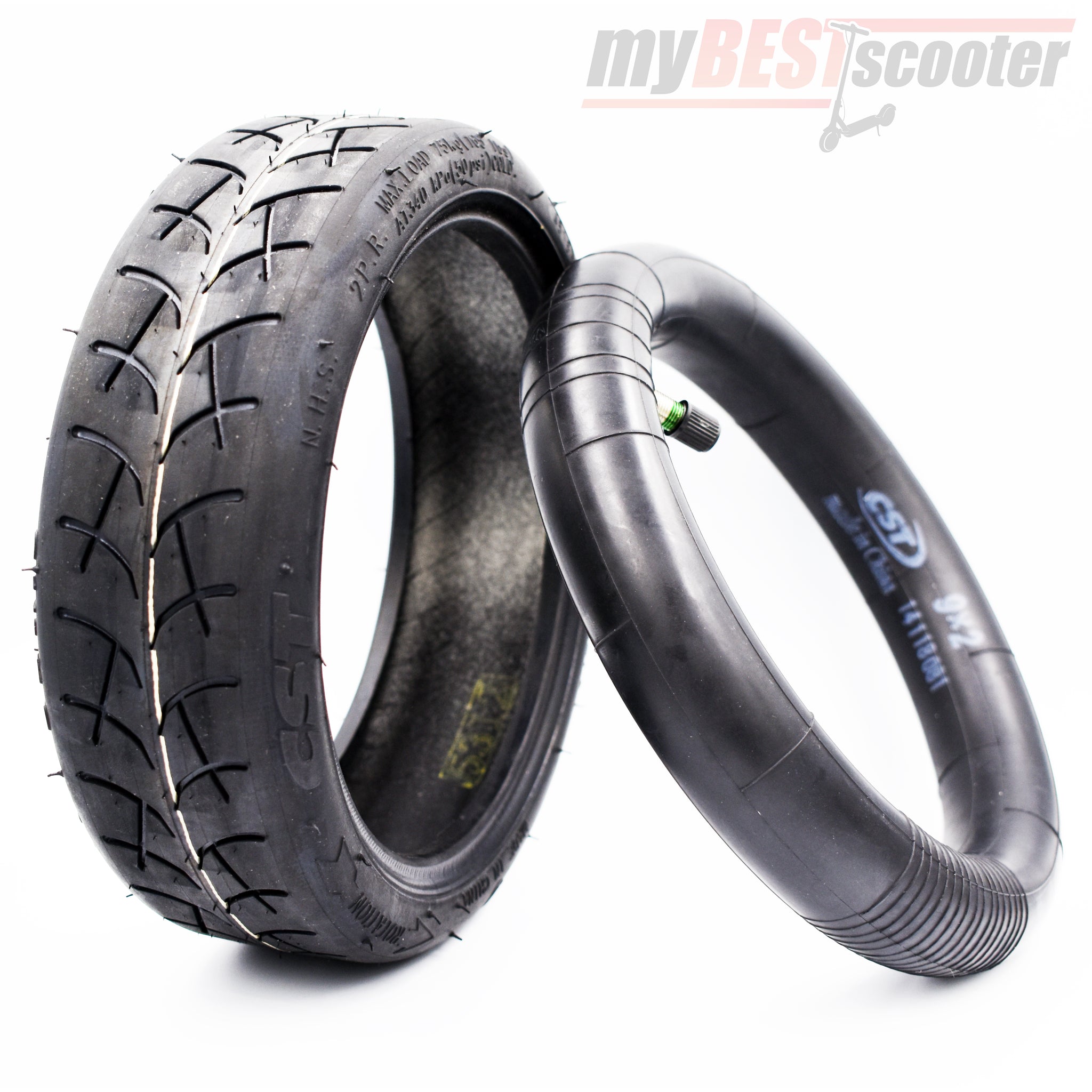 CST rubber tire with CST inner tube. Inner tube on it's own is available in the catalogue as well. The tube is 9", but it is suitable replacement for original 8.5 inch tubes.