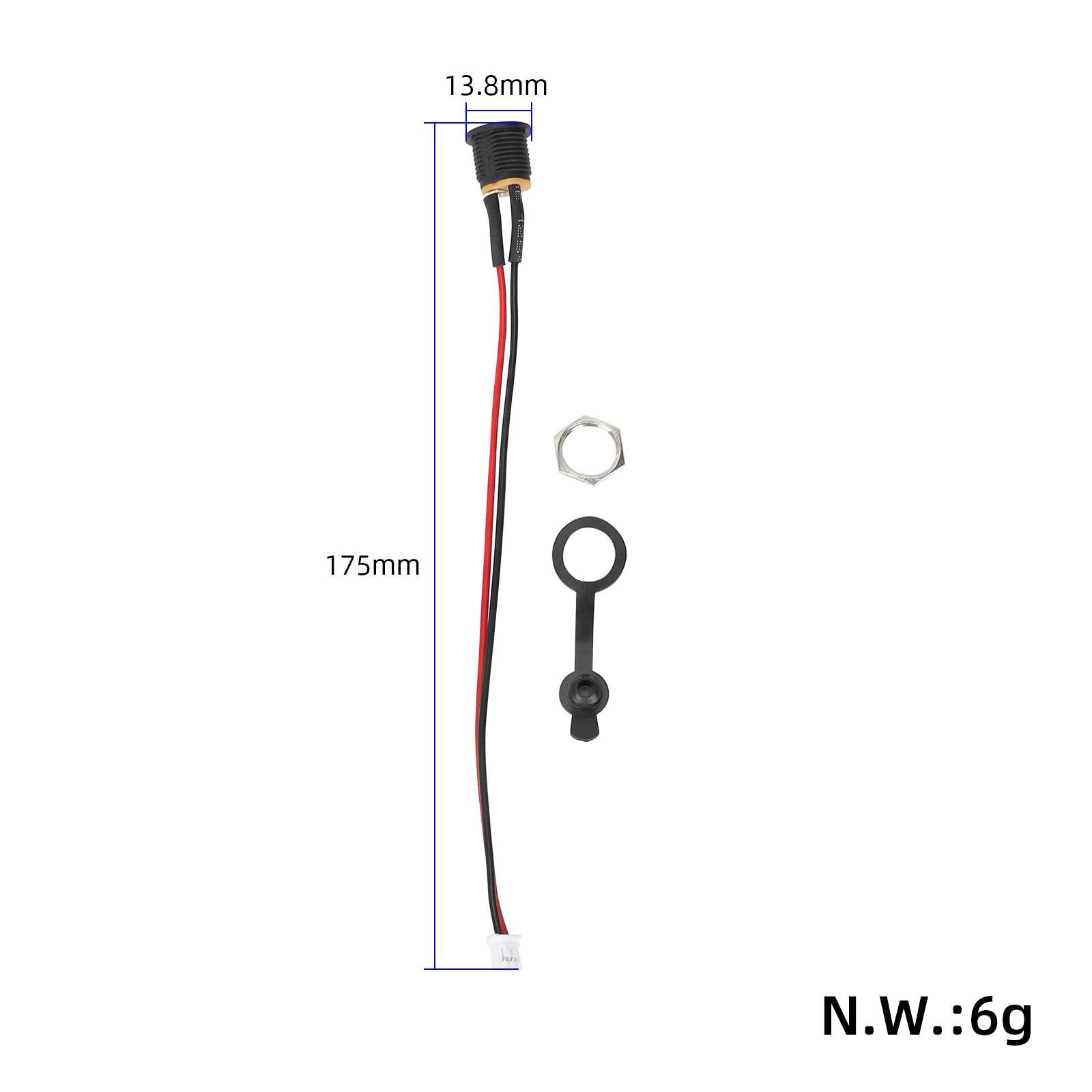 • Charging hole dimensions - DC5.5x2.1mm, charge port diameter - 1.4cm, cable length - 16cm
